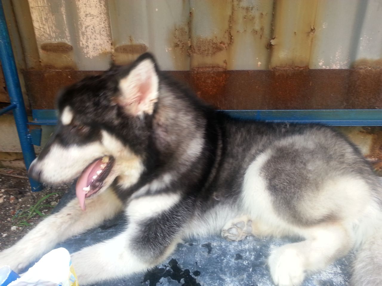 本人天津的,打小就非常喜欢宠物,从小到大养过不少猫猫狗狗,所以凡是活物我都非常喜欢,不过这些宠物里面,我最喜欢!最欣赏的!就是阿拉斯加,我一直梦寐以求的想养一只,但是由于种种原因吧,一直都没能如愿。。。。。。可就在今年的8月6号,我遇见了它!一只受伤的阿拉斯加,我们的缘分就从那天开始了!