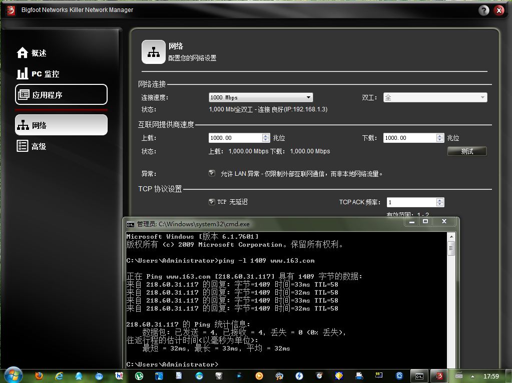 另外个人以前试过如果把杀手网卡TCP设置成1或者无延迟那么很多网页都无法链接还好其它不影响。