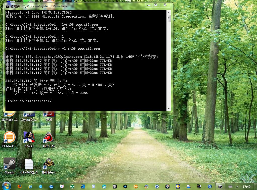 前几天利用PING命令测试网络