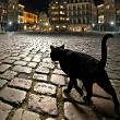 路灯上的黑猫