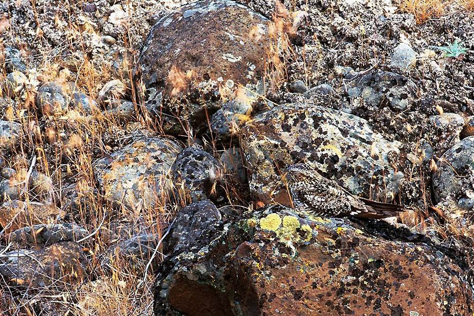 美国华盛顿,一只夜鹰在岩石上休息。