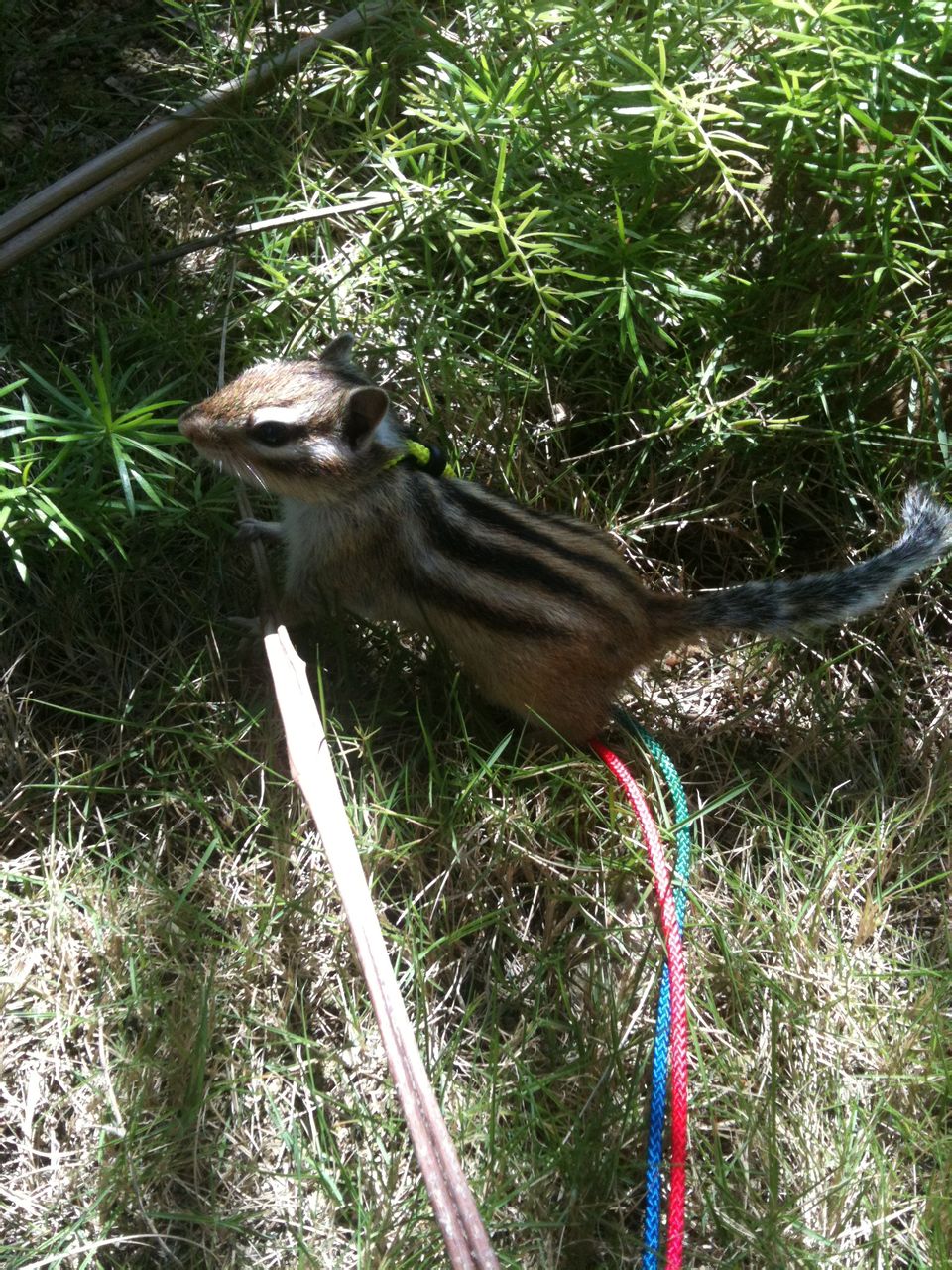 小米:本来想下来享受日光浴的,可是……好晒哦!我躲,我往草堆里躲!