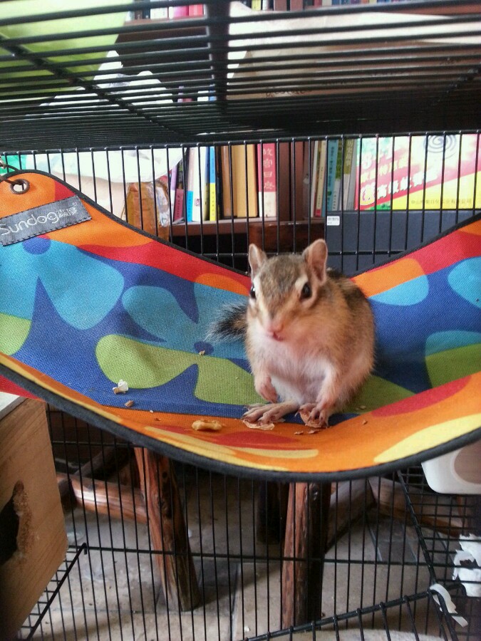 健健起床后解决吃喝拉,能玩一上午,下午就在吊床里瞌睡。美美一整天都在蹦没见过过她发呆或瞌睡