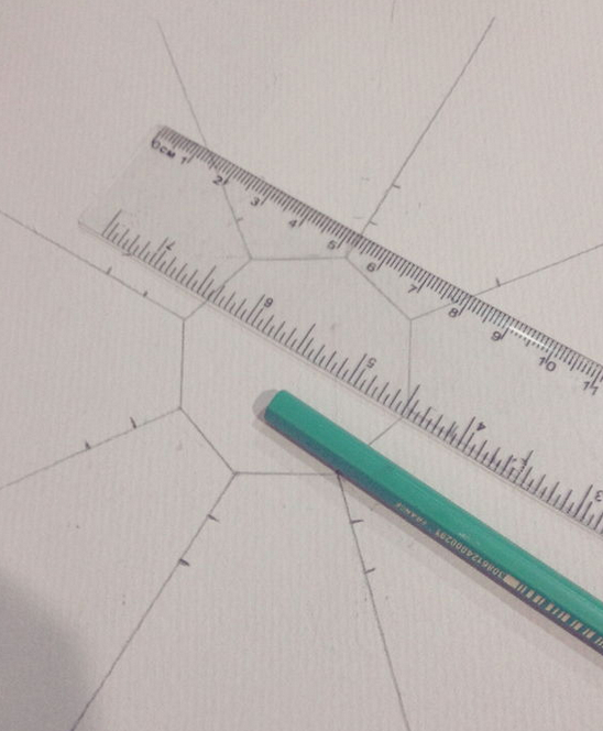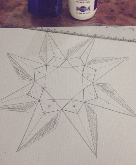 因为用的是硬纸所以折起来不方便,所以要用圆规把线段刻出来