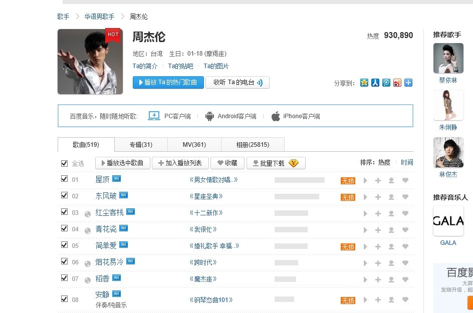 昨晚上百度音乐下不了杰伦的歌