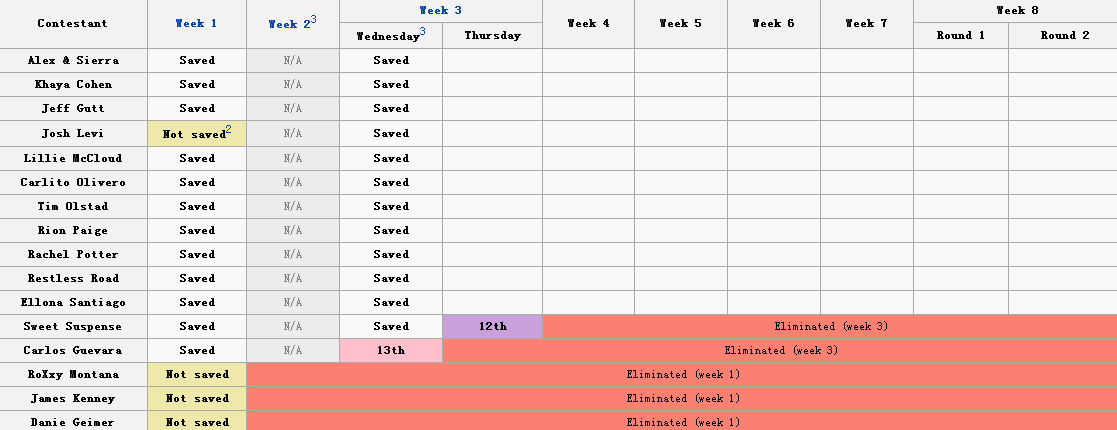 女菲人气爆棚。短时间内走不了,估计前三。。。男组没有B2真心操蛋啊。。。这绝对不是凯和秋的问题,虽然选歌和唱的不完美,弹绝对也是一流的,没大差,只能说美国观众很配合这个秀狗血的节奏