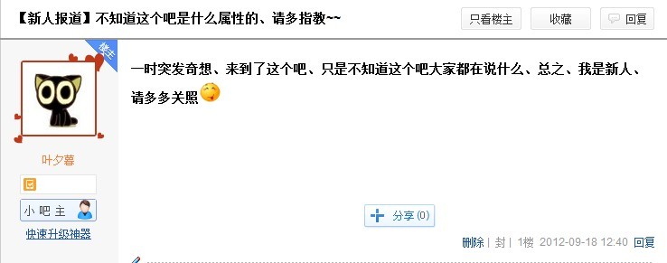 第一个贴子、2012年9月18日