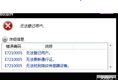 机器的指纹登录软件提示e7210005报错