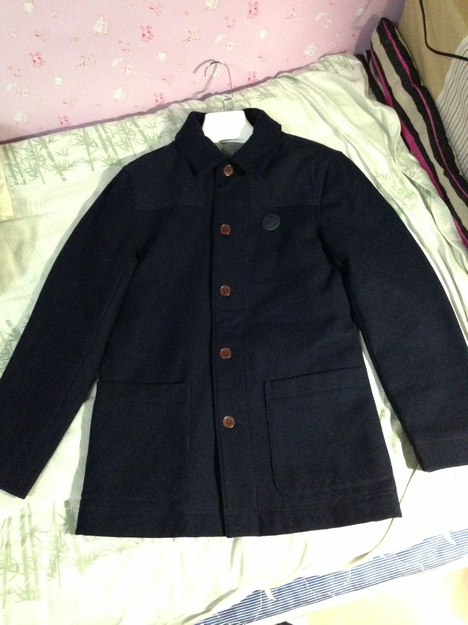 去年年初留学时购于英国,穿过一次就没有再穿过。今年翻出来发现还是不太适合自己的身材,遂转让。尺码是S,适合175~180之间身材瘦的朋友穿。