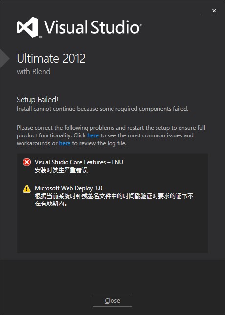 vs2012安装的时候出错 我重新装了web deploy 3.0 但是还...