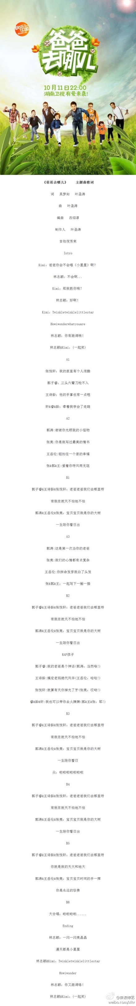 【分享】131119◇爸爸去哪儿主题曲官方MV与歌词。