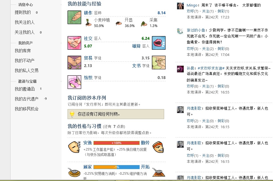 “CIVITAS是一个古典社会的抽象模型,时代背景大略选取于西汉-罗马时期。这个世界中的一切经济活动、政治环境以及其他因素完全由用户之间的互动形成,也就是说,这是一个非常开放的世界。在CIVITAS的世界中,没有任何NPC可以左右或限制用户的行为,一切源于你的选择,在这样纯净的、优雅的、灿烂的古典时代中,需要指出的是,CIVITAS、目前仍然在开发中,也就是说很多的功能仍然在完善中,虽然这会给你的体验带来一些很不好的影响,但同时,每日上线发现新功能的惊喜和看着她一点一点长大的成就感也是无可比拟的。”