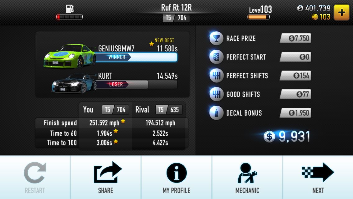 回复 憨豆☆先生 :Ruf对起步转速要求很高,不管加不加技师或加什么技师,最佳的点只有那么不到半格的范围,差一点成绩就差老远了。