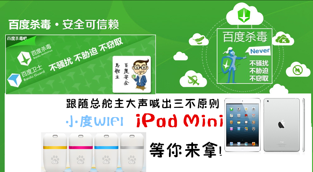 【活动】跟随总舵主喊出三不原则,ipadmini,小度wifi等你来拿!_百度杀毒吧_百度贴吧