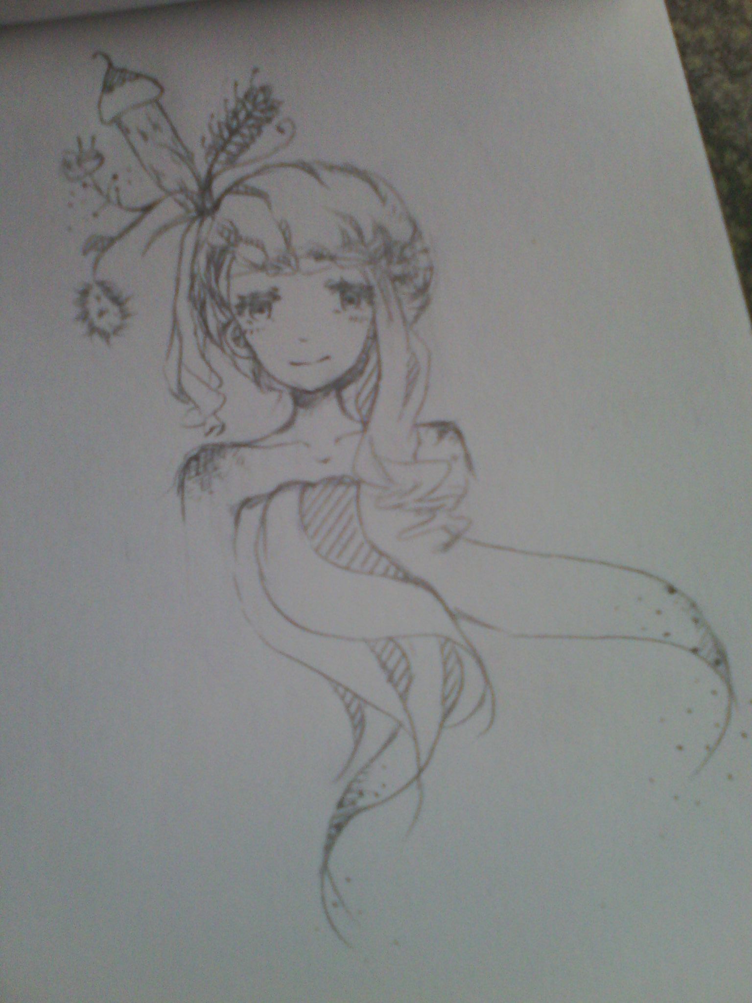 第二张水彩~因为当时画的时候收一只抖啊抖的,然后衣服和头发就涂成这熊样了