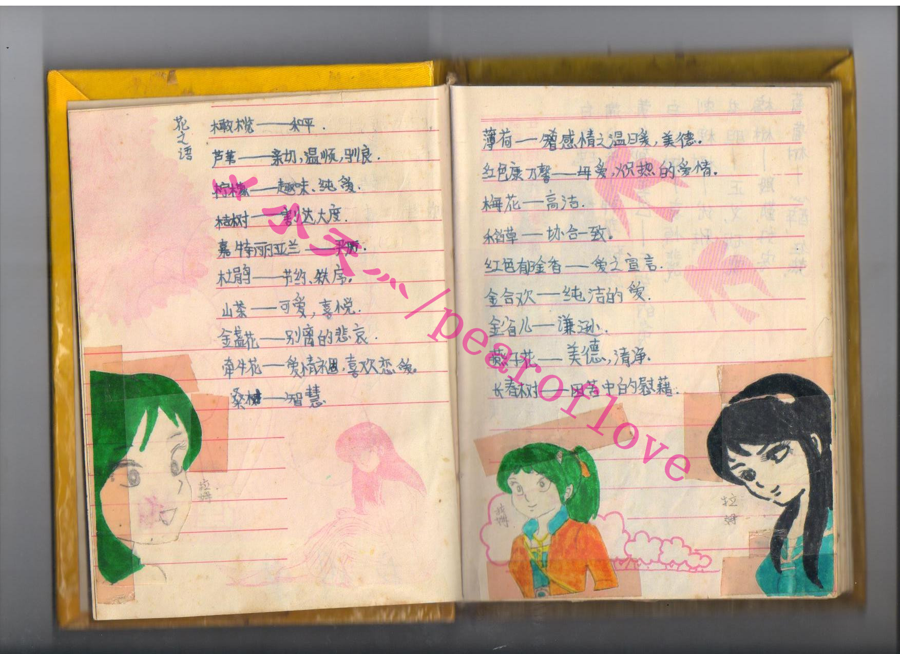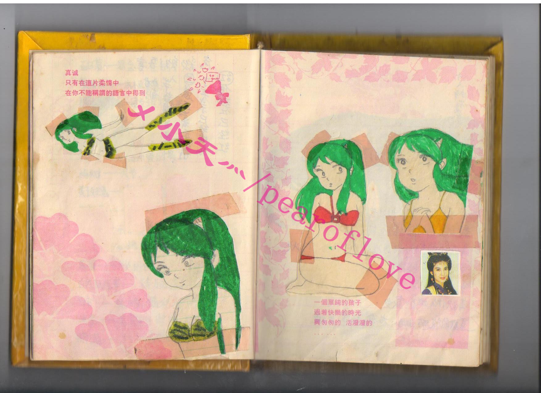 专贴拉姆画集的这本结束了,其他还有两本,其中一本更精彩,我在想要不要贴在这儿。因为那本里面以乱马为主,福星人物比较少,时间跨度也大,从小学到后来还在摘抄和贴画。另外一本又是一部漫画的人物,少女漫画,也许看过的人不多。
