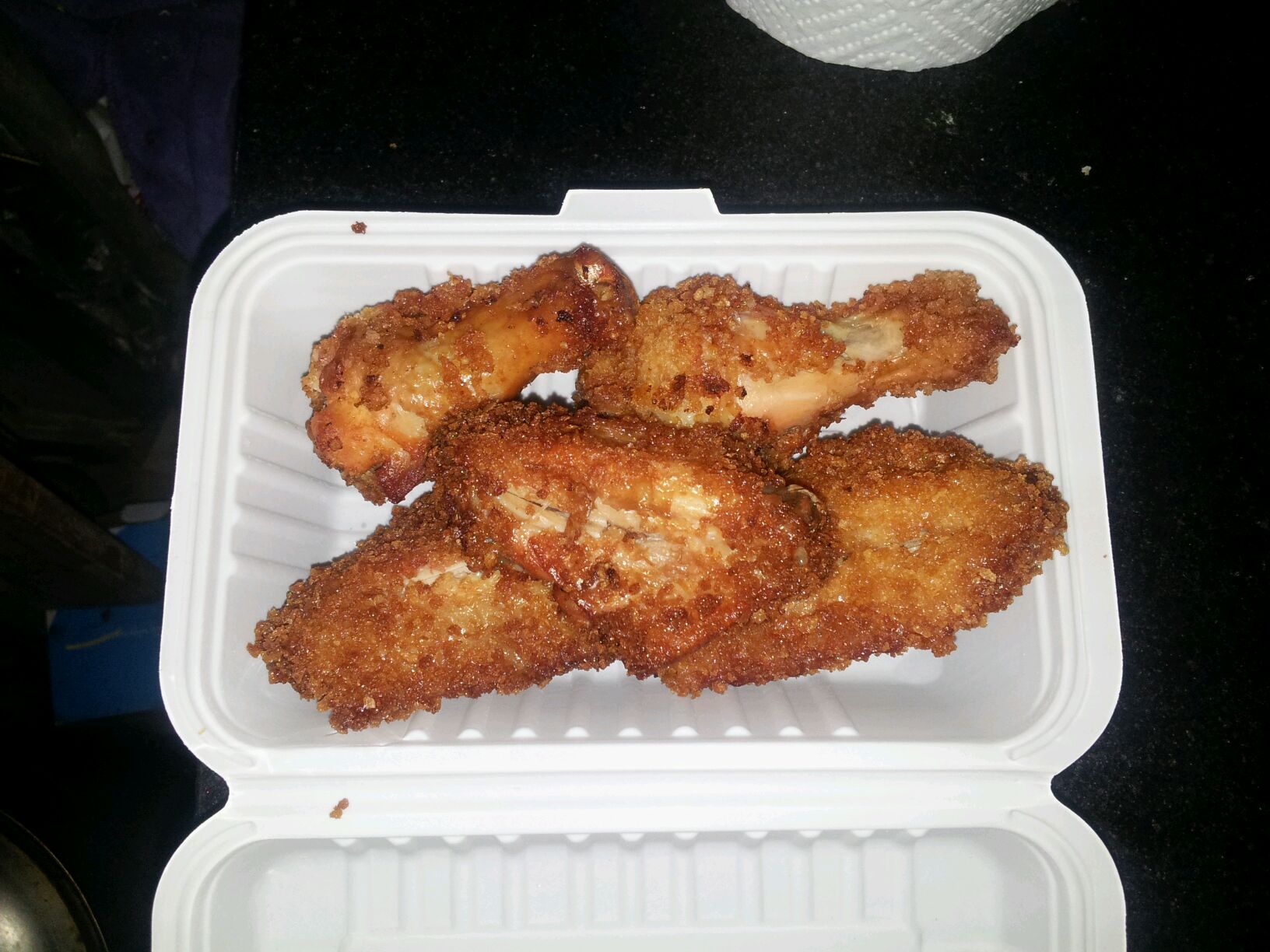买的奥尔良烤翅料,把鸡翅划开一刀放冰箱冷藏十二小时以上,然后用吸油纸把水分吸干,裹蛋清液,沾面包糠,热油下锅,油开花了转最小火,炸完后再复炸一次,出锅后,用吸油纸把鸡翅油尽可能吸干