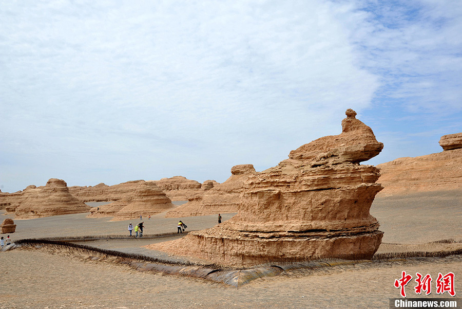 罗布泊边缘的敦煌雅丹国家地质公园,形成至今约4万年的雅丹地貌展现出大自然天地造化、鬼斧神工的魅力,也被人们称为“魔鬼城”。中新社发 孙自法 摄