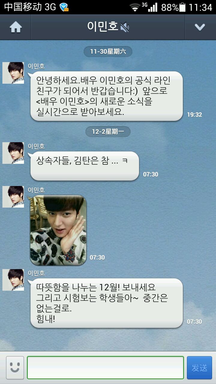 恩~line me,一个类似微信的软件,里面有好多明星的帐号~