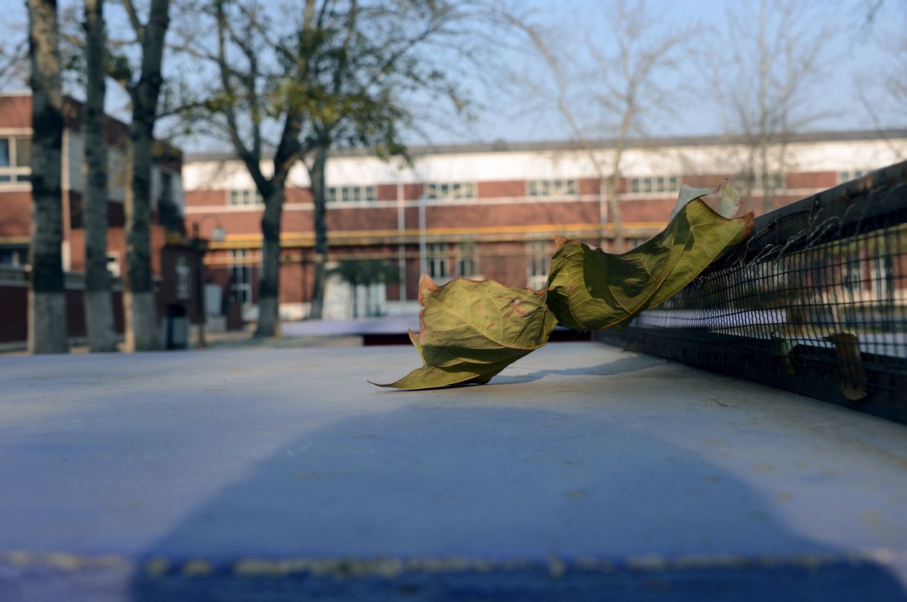西区的乒乓球台,可惜我捡到的一片大树叶丢了。
