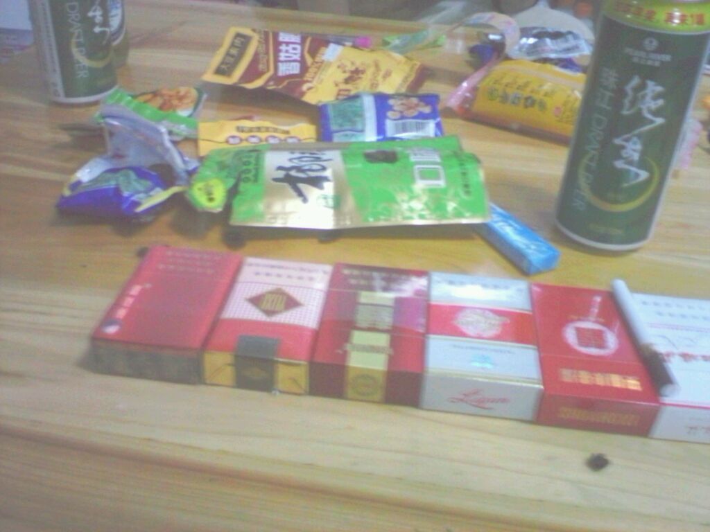 大侠 你会抽烟么 最边上的一包是玉溪 一包是黄鹤楼 而且在桌子上根本没有十五块一包的烟