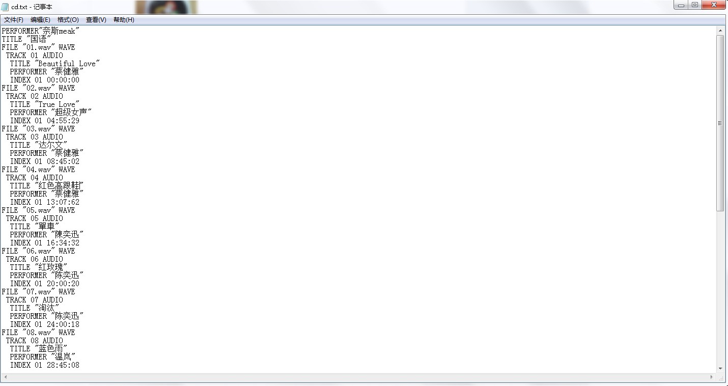 求助 求助 怎么刻录的歌不显示名字 有cue文件也不行。。。。