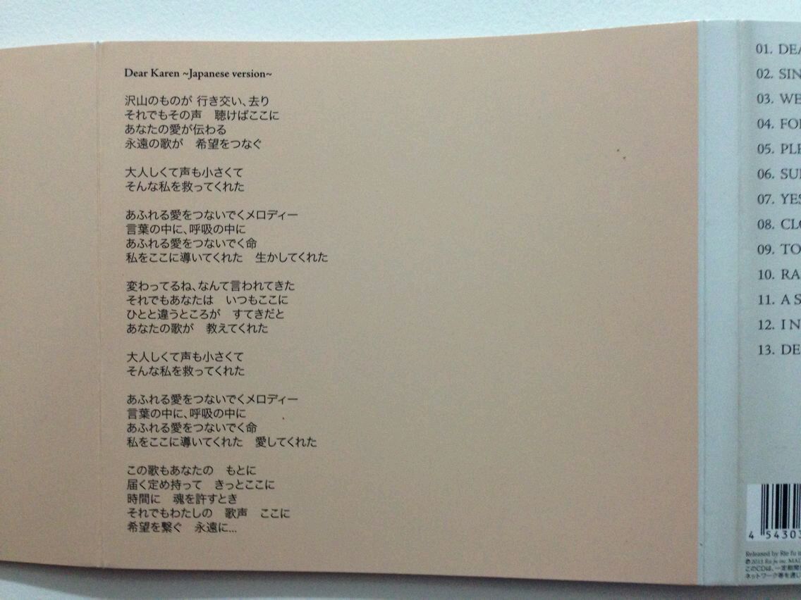 其他卡朋特的歌词容易查到就没拍哦。之后rie fu的每一张单曲/专辑我都会入,希望大家也支持正版,支持rie fu