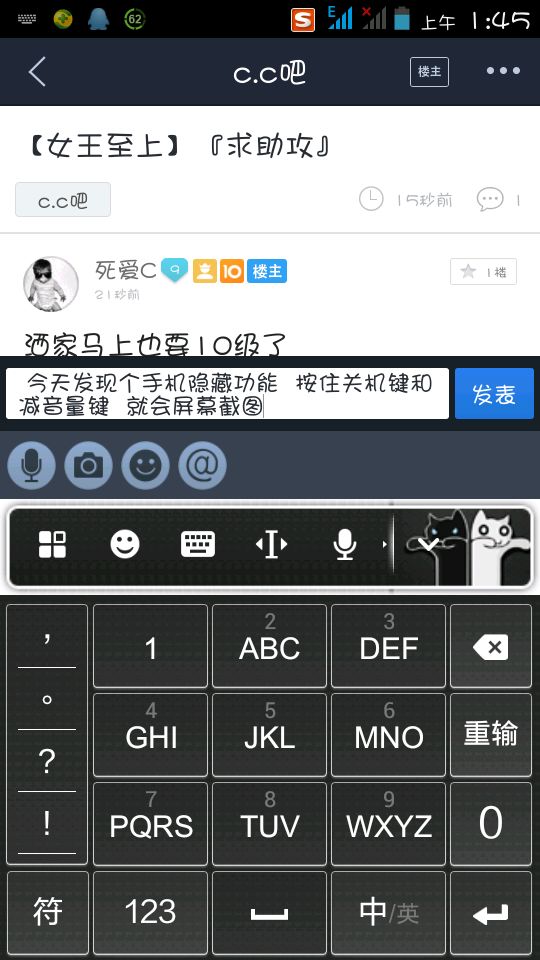 今天发现个手机隐藏功能 按住关机键和减音量键 就会屏幕截图 如图