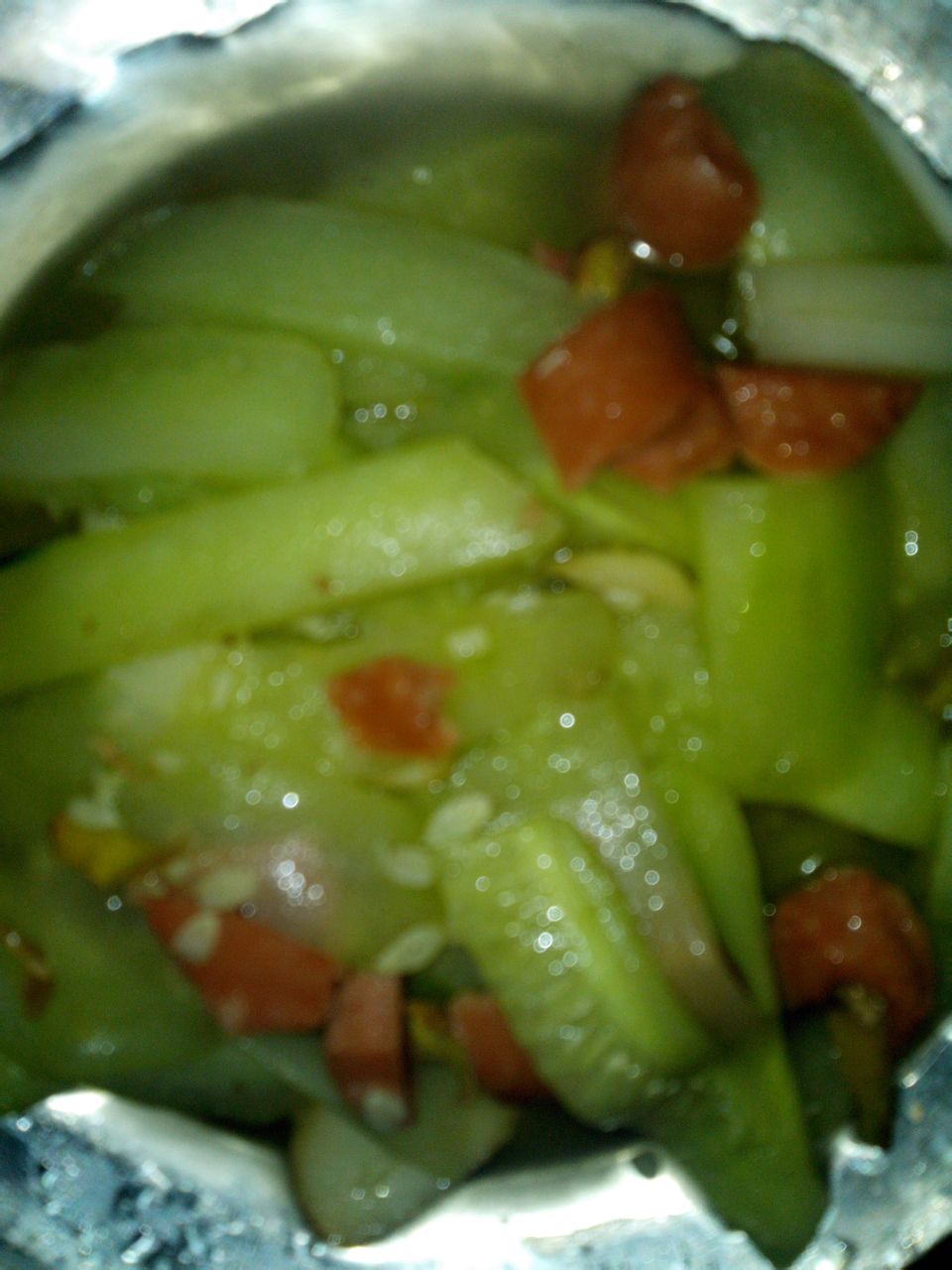 这个黄瓜就更惨了。是没洗锅吗?有点黑~~