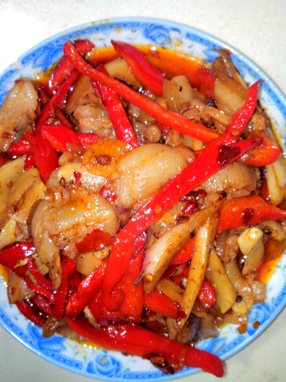 甜椒炒五花肉、甜椒有点贵、哎,屌丝吃不起。别喷我。真的很穷。