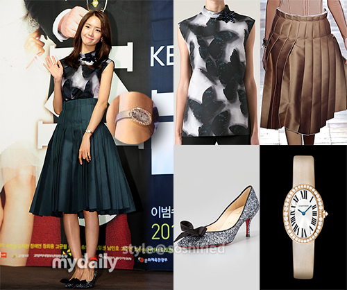 Lanvin: Butterfly Sleeveless Top @ Farfetch.com $1,502.71 Fall 2013 RTW Collection Christian Louboutin: Gruotta Glutter Bow Pumps @ Neimanmarcus.com $995 Cartier: Baignoire Watch Small in Pink Gold and Diamonds @ Cartier.us $25,600