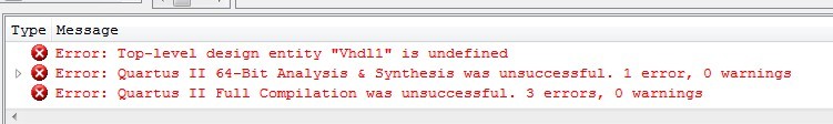 实体名和文件名要保持一致,你是没改它的(默认为vhdl1,要改成你的实体名)文件名