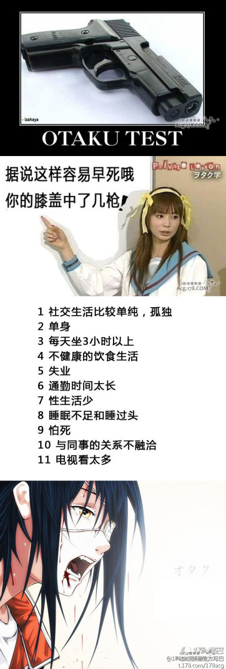 【盘点“早死的人”11大特点 御宅们的膝盖中了几枪?】英文网站Huffington Post发表了一篇文章“寿命短的人的11个特征”在网上引起热议,翻译到日本后,阿宅们纷纷表示中枪无数,神马童贞啊、孤僻啊、饮食不健康啊都被点了!那么你中了几枪呢?