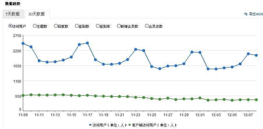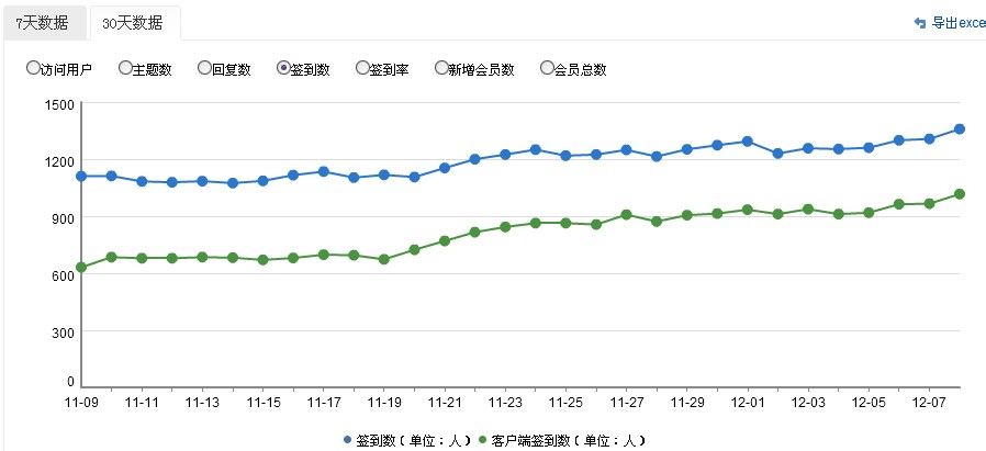 然后是这超稳定的会员数。。简直绝壁 当然这个是坐标的锅 懂的自然懂当然只看这种折线图是分析不出太多来的 所以导出EXCEL进行进一步探讨