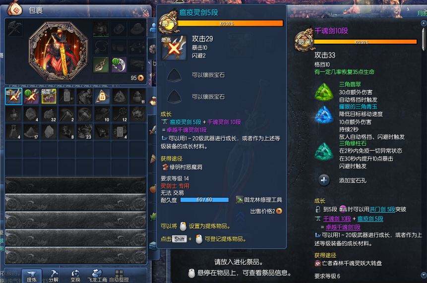 唉,楼主,不要用瘟疫灵剑喂你的千魂剑,灵剑跟剑不一样.....楼主仔细看看....