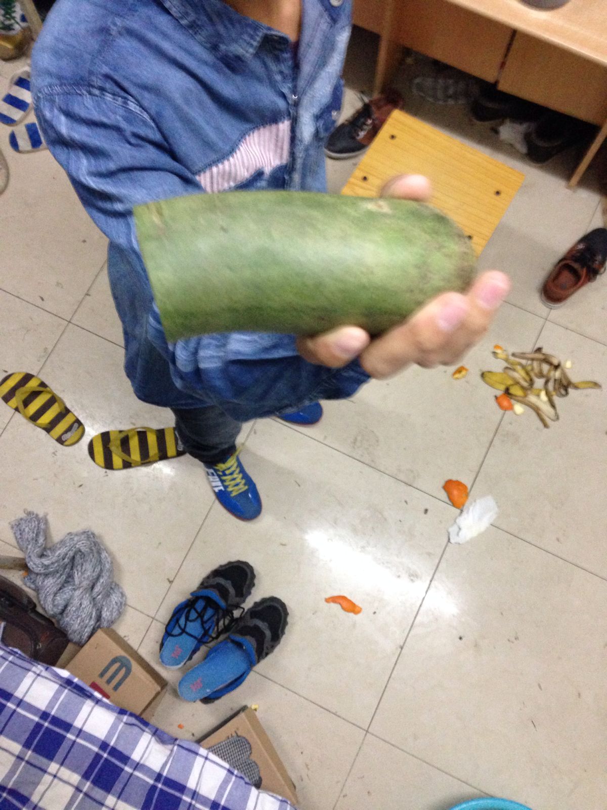香蕉皮都扔地下 晚上上厕所卡死他们