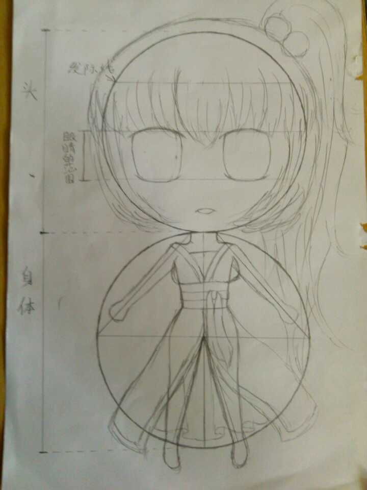 Q版是头大身小,且是两头身,所以圆可以帮我们找结构