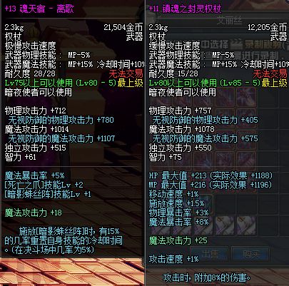 竟然没带属性石,你卡个暗强试试,13离歌应该比11镇魂多不了6%了,而且11镇魂还可以增加愤怒野心的伤害,以及出的各种状态,这两武器应该差不多了吧~