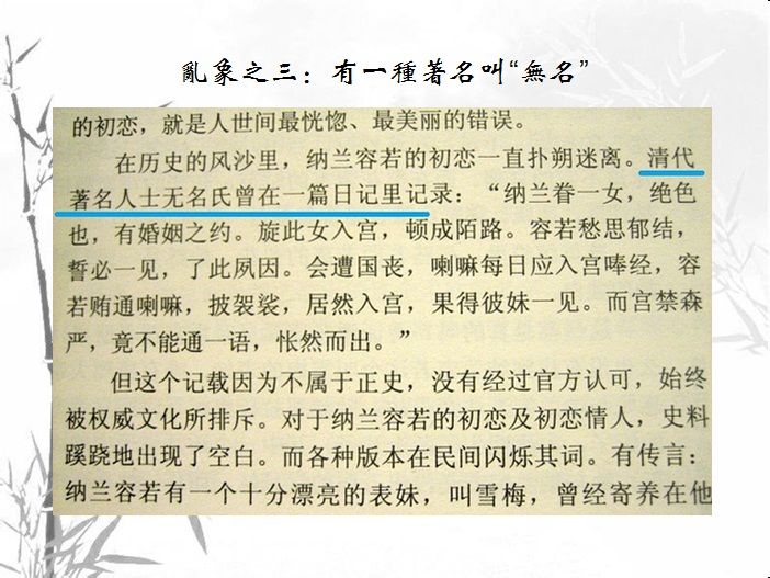 我的开场白就是说为什么要开这个读书会,因为铺天盖地的纳兰书籍,造成了许多困扰和误导,需要有这么一个场合我们来聊聊,结合自身需求,找准
