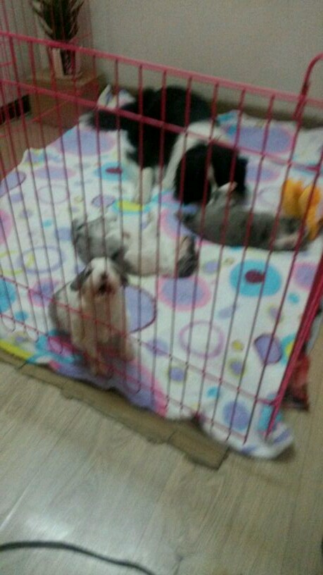 小狗们现在会尿尿了,窝得一天一换,在毯子下面还铺了尿布,换完窝的小屁孩们