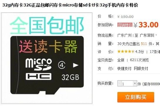 1.只要30+,32G的内存卡包邮全国~~