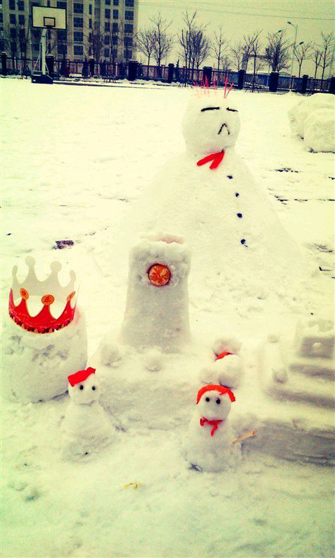 天津小伙伴们去年就很给力啊!堆出的雪人很奇葩的。