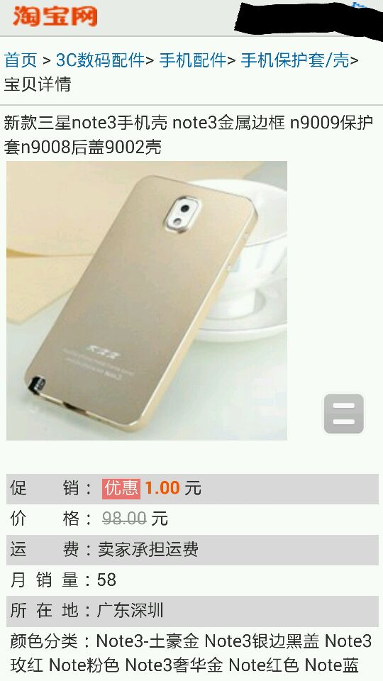 大哥,大早上的不带这么黑人的。。。我是note3用户,只是想买个金属套子,98元觉得比较贵,就看看低价的,就看到了。。。
