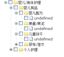 婴儿配方,果酱,儿童饼干这些节点都是没有子节点的,我设置了isParent=true ,点开会有一个undefined的节点,所有的都是、