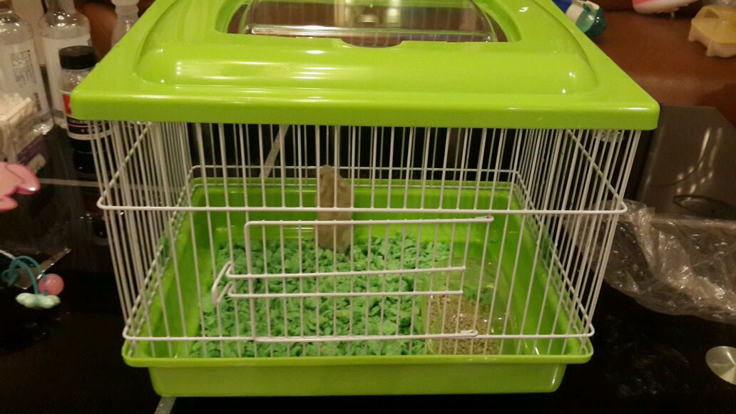 品湖绿,有咬痕,正常使用痕迹,无破损,带原配跑轮食盆和图中的哈姆太郎水壶,这个不快递,原配包装太挤了裹了泡泡纸就装不下了