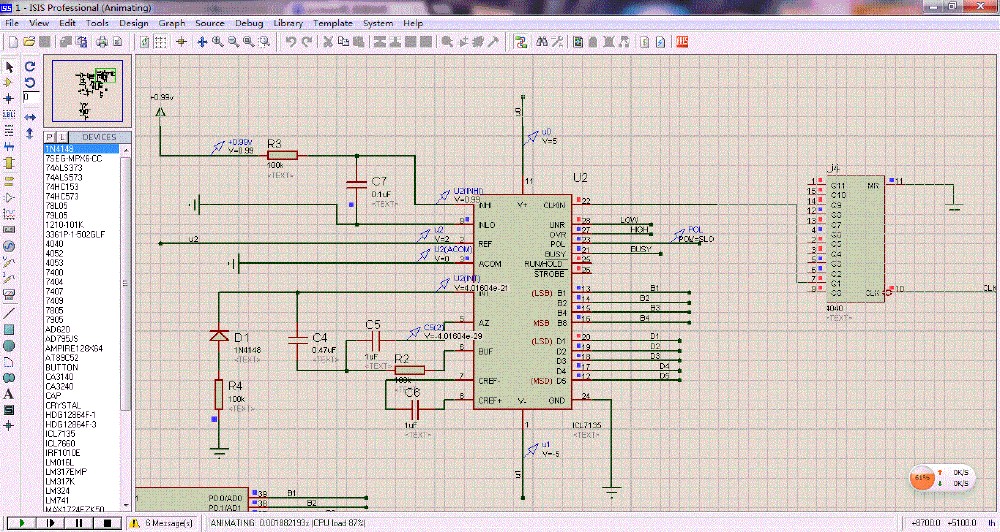 仿真中同时出现ad620与icl7135时,icl7137不能正常工作