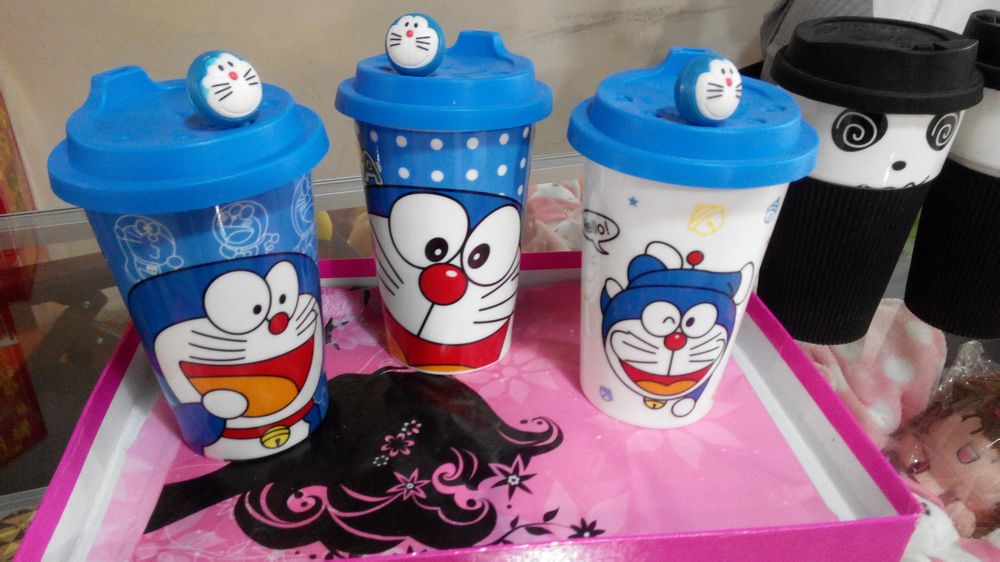熊猫款和哆啦a梦款 就是这样的杯子