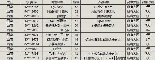 【西南】12月23日使用外挂玩家封号公告