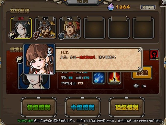 S0的小号,前几天就要满将了,然后昨天、前天活跃都有一红,分别是前天初出卢植,昨天中出徐氏,无奈何,何进吃了黄月英、费祎、法正、荀彧、曹仁转了,然后将位就成了46/50。没想到今天活跃居然来了个一中双红,这下又要没位置了啊。。。上游逼我上V5么