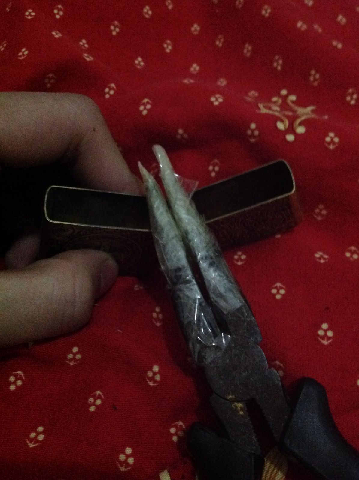 我们先将胶带缠到尖口钳上